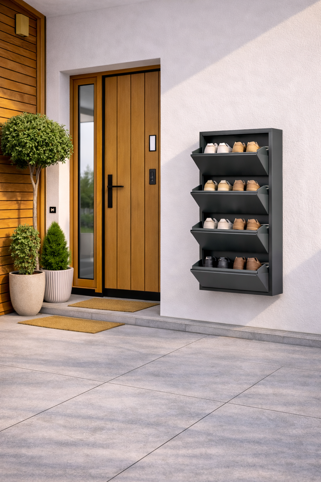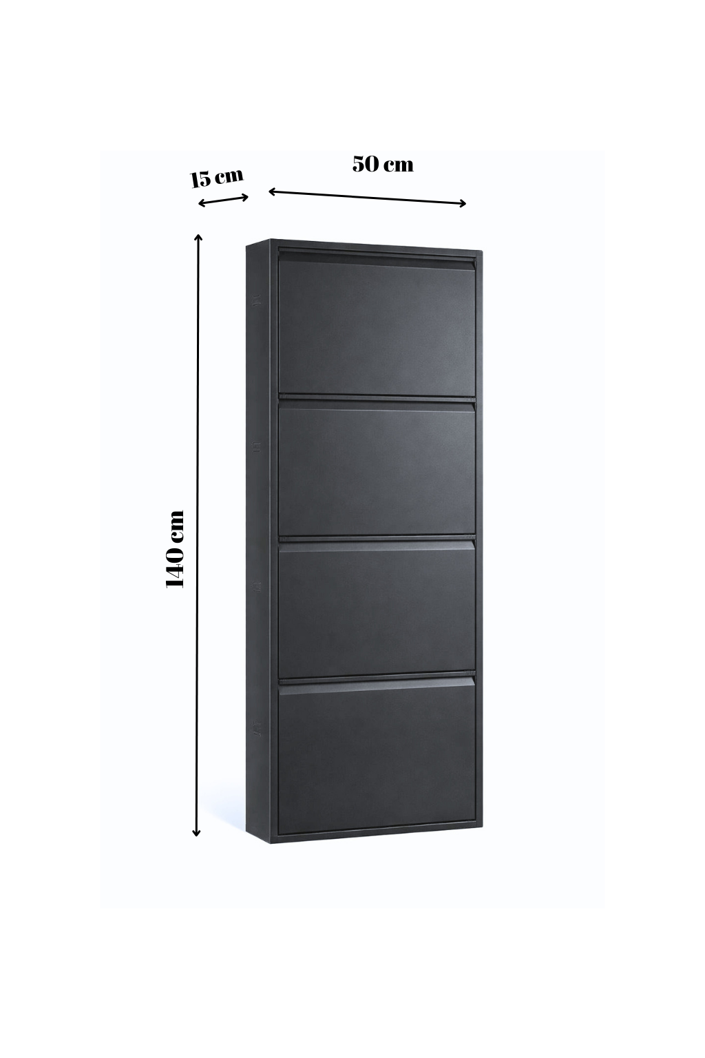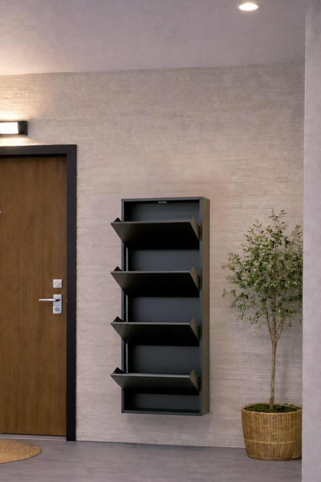 4 Kapaklı Mıknatıslı Metal Ayakkabılık – Antrasit