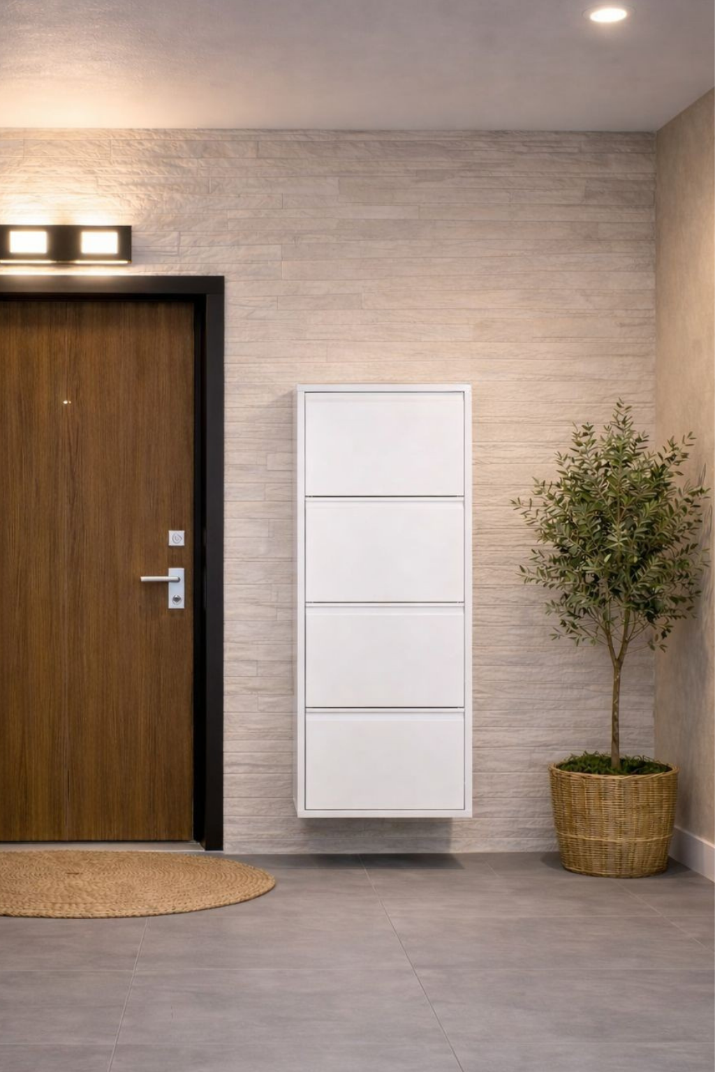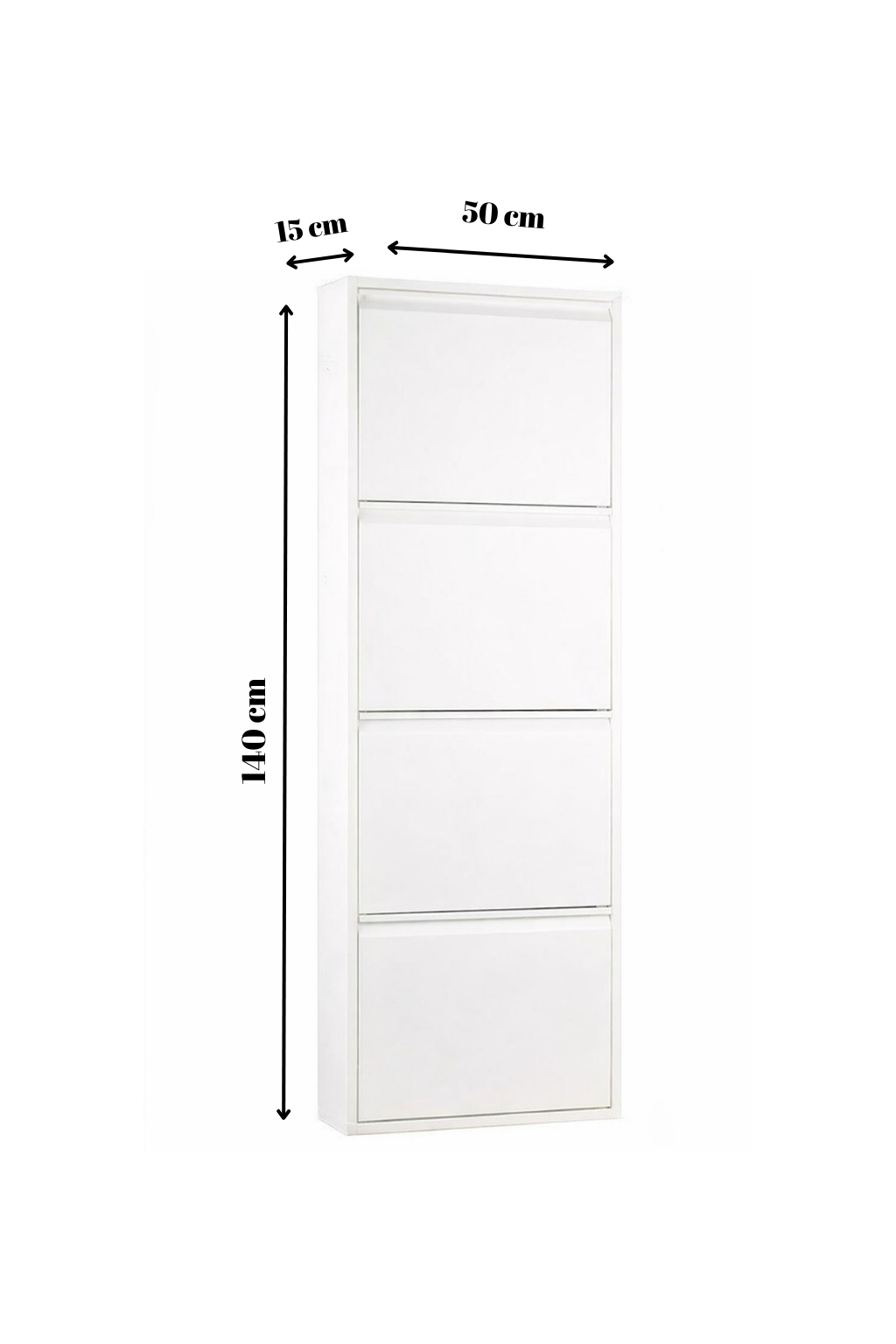 4 Kapaklı Mıknatıslı Metal Ayakkabılık – Beyaz