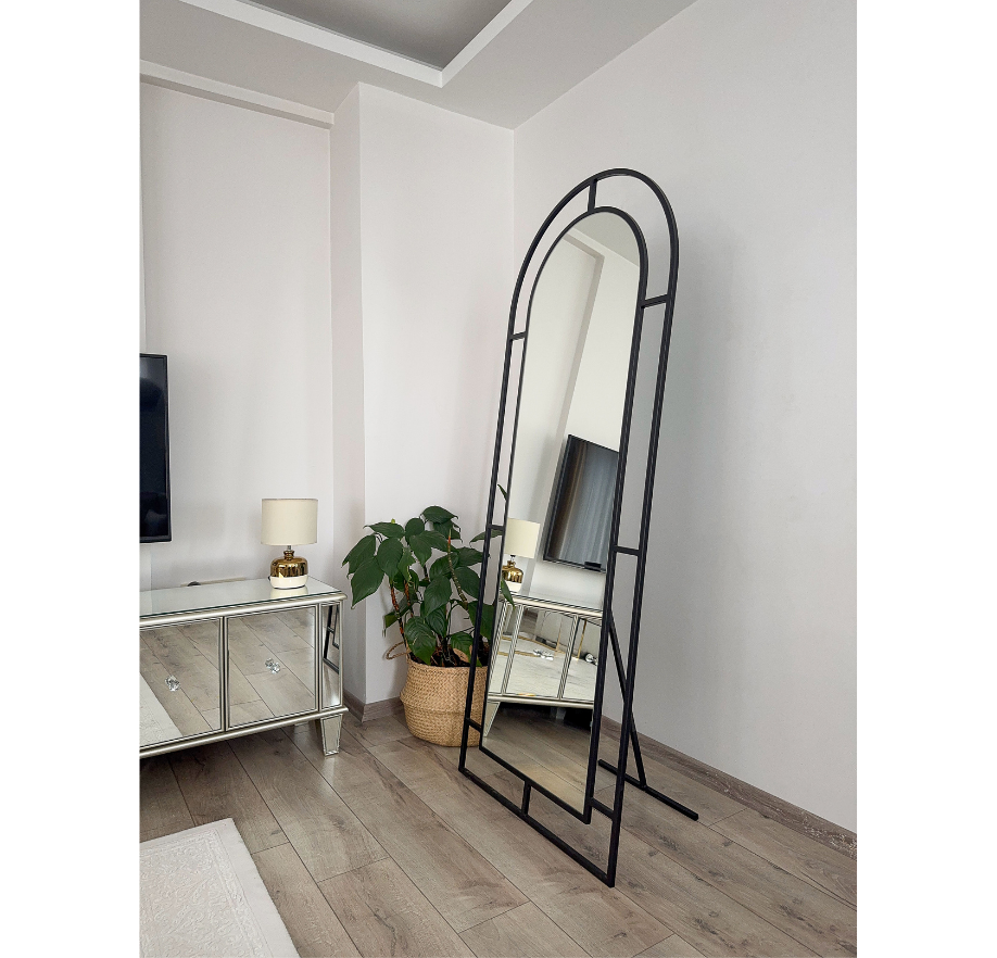 Modern tasarımıyla dikkat çeken siyah metal çerçeve, her türlü dekorasyona kolayca uyum sağlar.- 180x70 cm boyutlarındaki geniş yüzeyi ile geniş kullanım alanı sunar; makyaj yapmaktan günlük bakımınıza kadar tüm ihtiyaçlarınız için idealdir. Oval şekli sayesinde klasik ve şık bir görünüm sergilerken, ayakları sayesinde yerden tasarruf etmenizi sağlar.- Üretiminde kullanılan kaliteli malzemelerle uzun ömürlü kullanım vaat eder; dayanıklılığı ve estetiği bir arada sunar.- Yerli üretim geleneksel Türk zanaatının modern teknolojiyle buluştuğu bu ayna, hem kaliteyi hem de yerel kaynakları destekler. Kolay sökülebilir ayakları sayesinde duvara monte ve ayaklı olarak kullanıma uygundur . Temizliği hafif nemli bez ile yapılması ve kimyasal madde ile temas ettirilmemesi şeklinde önerilir .